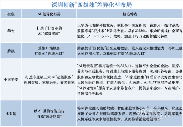 从算力底座到终端应用,从C端生态到专业服务,“深圳创新四姐妹”的AI布局,既展现了企业的差异化探索,更折射出国内AI产业从技术突破向商业实效迈进的阶段性特征。